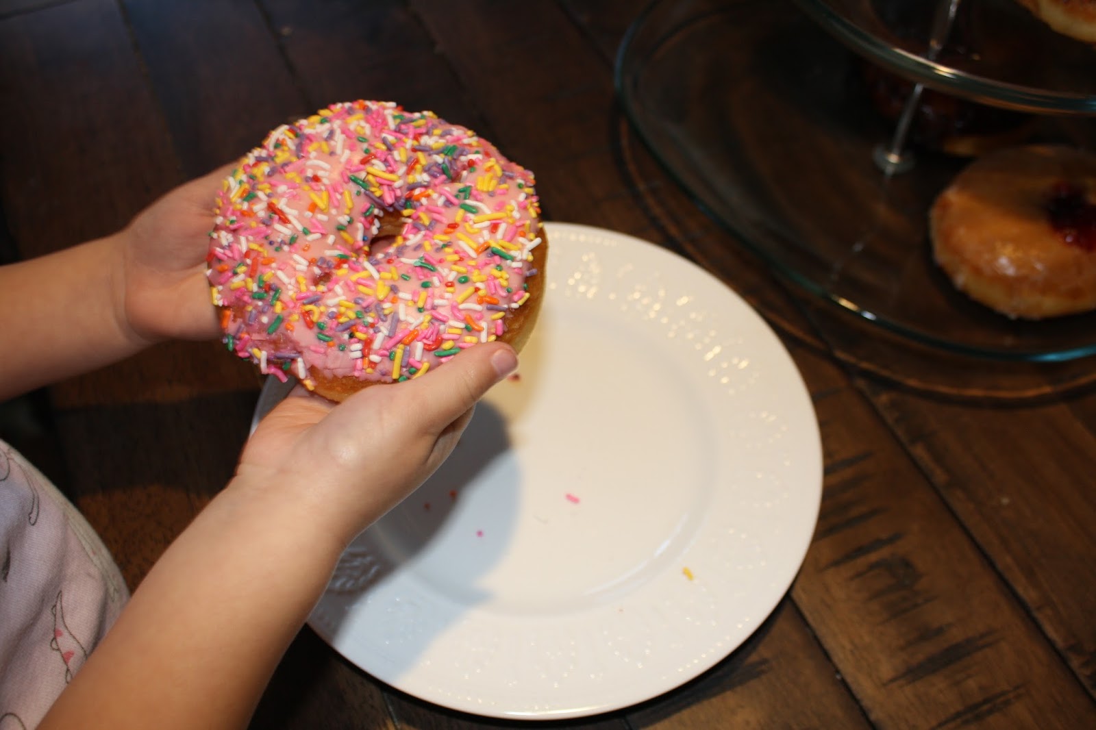 This year we had a mini celebration with family, prior to having a birthday party with friends. In another life I might be a baker, but today I'm just not, I've definitely made cupcakes with the kids before but on a whole, baking isn't really my gig... so, store bought doughnuts it is! Pink flowers, a cupcake balloon the size of her body and we sang Happy Birthday in the morning, she was the happiest little girl.